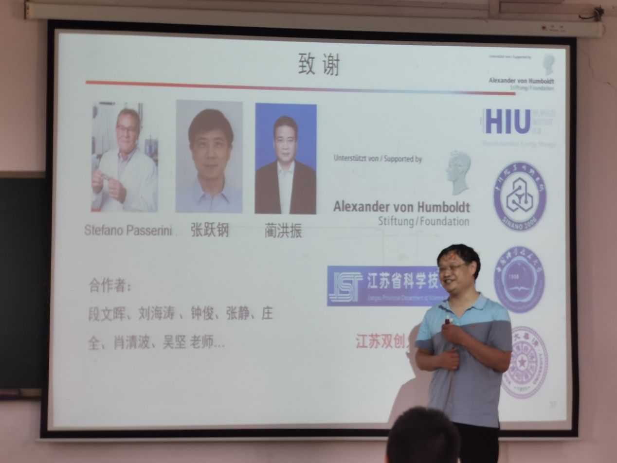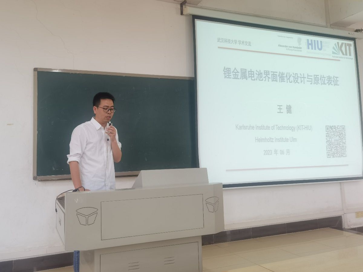 (通讯员朱思聪)6月12日上午, “洪堡学者”获得者、德国Karlsruhe Institute of Technology、Helmholtz Institute Ulm电化学研究所研究员王健博士应邀为304永利集团作学术报告,报告题目为“高比能锂金属电池的催化设计与原位机制表征”,报告会由应用物理系光电信息科学与工程专业教研室主任朱思聪主持。304永利集团经理丁义明,304永利集团副经理王玉华,创新创业公司副经理汪汝武等几十位师生参加了此次报告会。