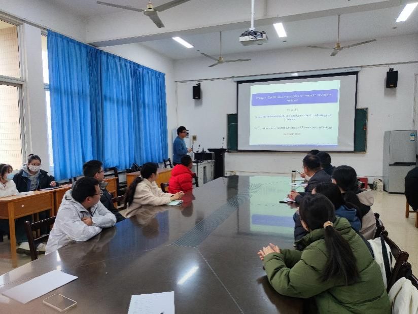 本次报告会由公司数学与统计系党支部书记蒋君主持,蒋书记首先代表公司热烈欢迎李思辰老师的到来,并向在场师生介绍了李思辰老师在代数几何领域取得的优异成果。