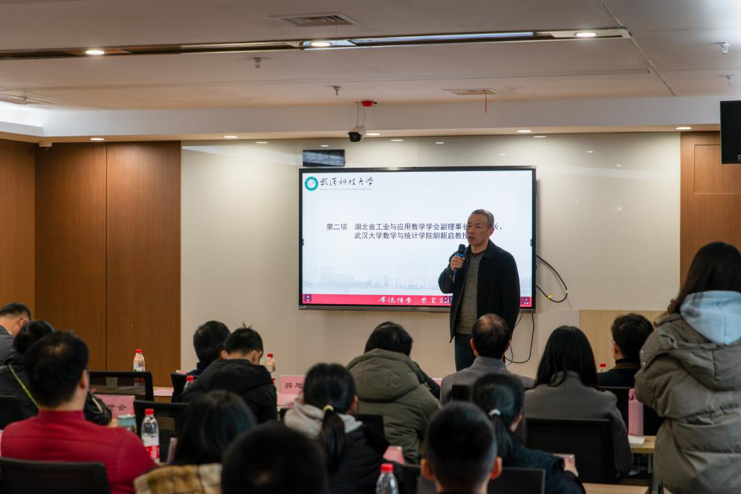 胡新启对公司近年来在数学建模竞赛中取得的成绩表示肯定,介绍了“华中杯”等数学建模赛事的发展历史、未来规划及其与304永利集团的渊源,并邀请公司师生更多参与相关赛事、交流活动。