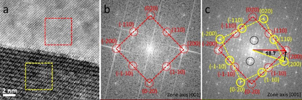 图2 氧化物薄膜叠加形成TEM摩尔条纹及FFT图