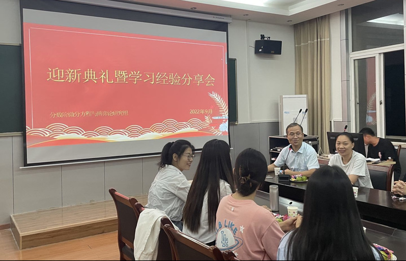 2022年9月22日晚,304永利集团分数阶微分方程与博弈论研究组在教二楼五楼会议室举行组内研究生迎新典礼暨学习经验分享会。组内全体教师和研究生出席了本次会议,通过线下和线上同步进行。会议由20级数学专业研究生潘前主持。