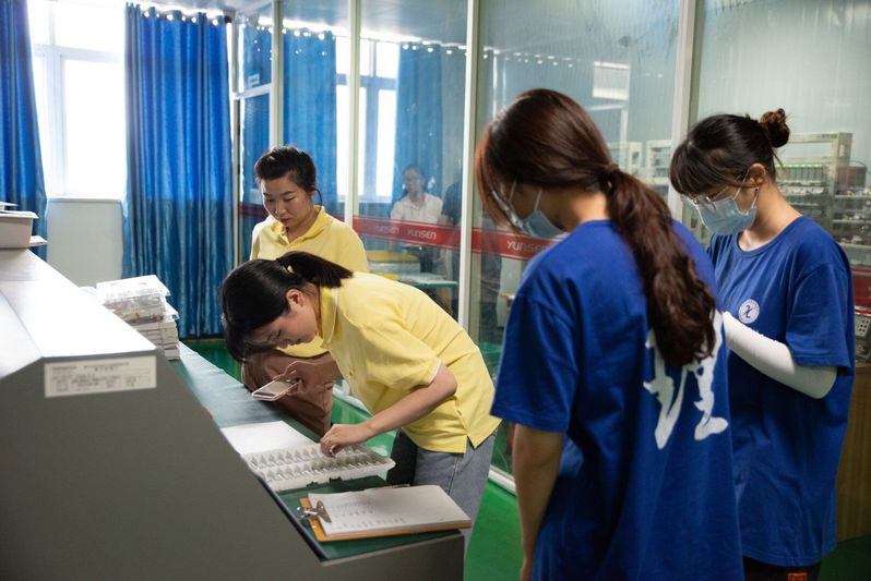 电池样品成型后,还要经过理化分析室、安规测试室、环境测试室等的逐步试验。实践成员魏渝萱在观摩各类技术操作后说道:“原来日常生活中微不足道的电池,也需经过如此复杂的技术测试和模拟实验后制成。”她表示自己也对电池样品的形成流程有了基础了解。